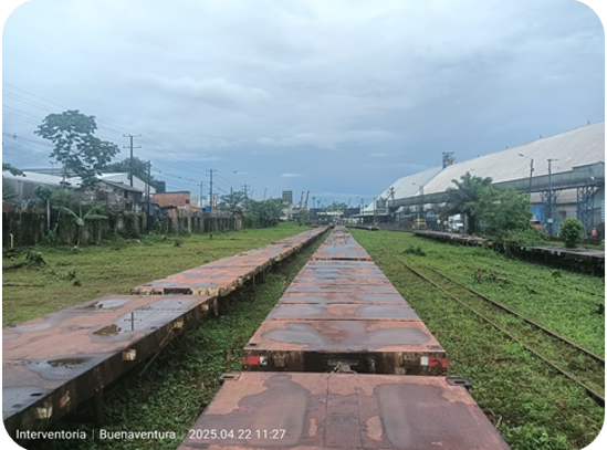 Non-electrified freight rail line (currently not in operation). The sections under intervention include the line from Buenaventura to La Felisa, the Zarzal – La Tebaida branch line, and the Cartago and Caimalito rail bypasses. This is an administration, oversight, and maintenance contract in which the main interventions include surveillance, brush clearing, cleaning, and clearing of the entire corridor; maintenance of stations, workshops, and warehouses; administration, conservation, and maintenance of rolling stock; maintenance and conservation activities such as the installation of ballast, rails, and sleepers for the commissioning of the prioritized railway infrastructure between Palmira and Buga, over a length of 41 km; and environmental, social, and legal management for the removal of encroachments and the filing of complaints with oversight bodies.