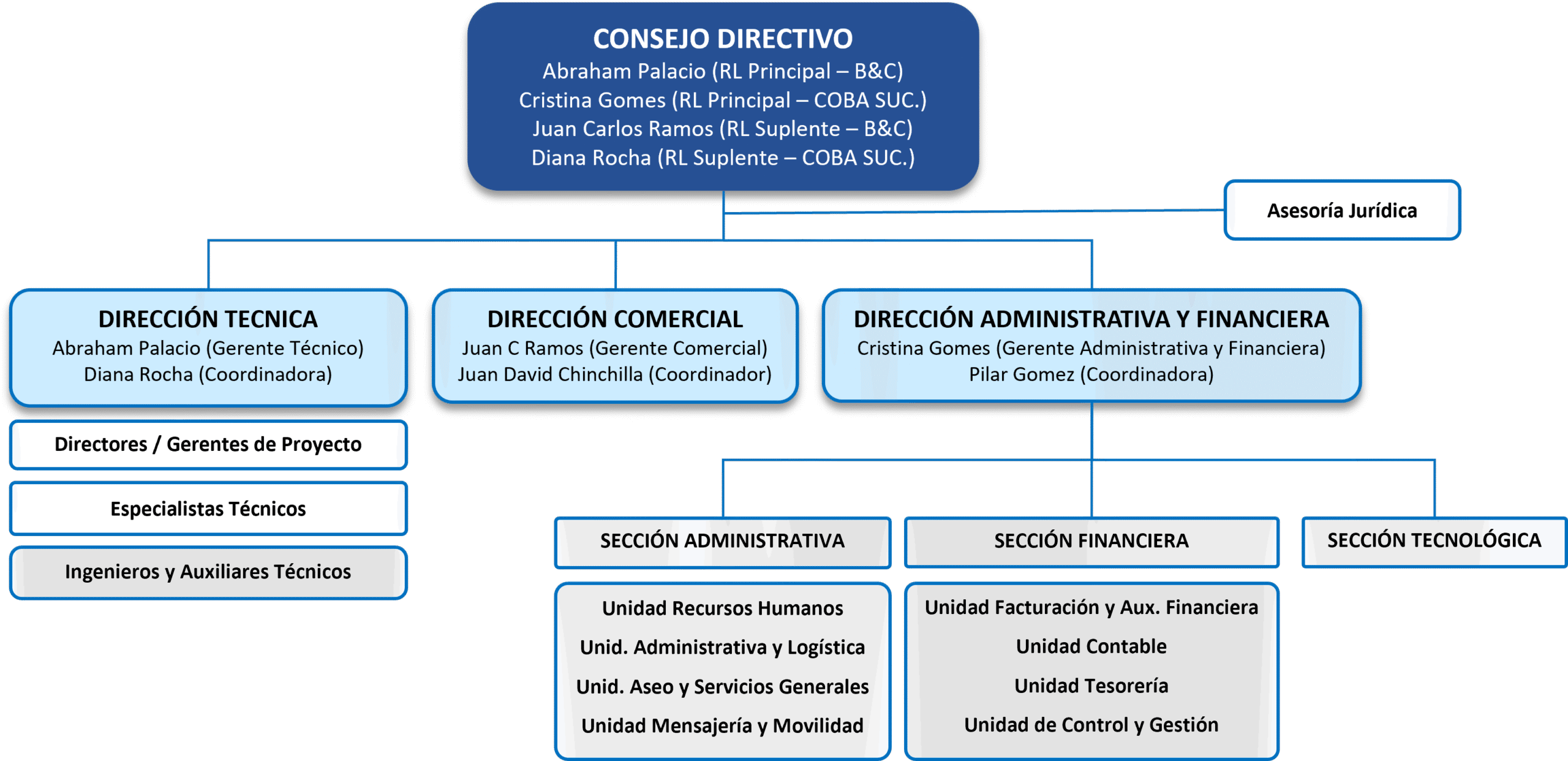 El Grupo COBA B&C en Colombia cuenta con una estructura organizativa diseñada para integrar capacidades técnicas, administrativas y operativas de manera eficiente, alineada con los estándares internacionales del grupo COBA y adaptada al contexto colombiano.